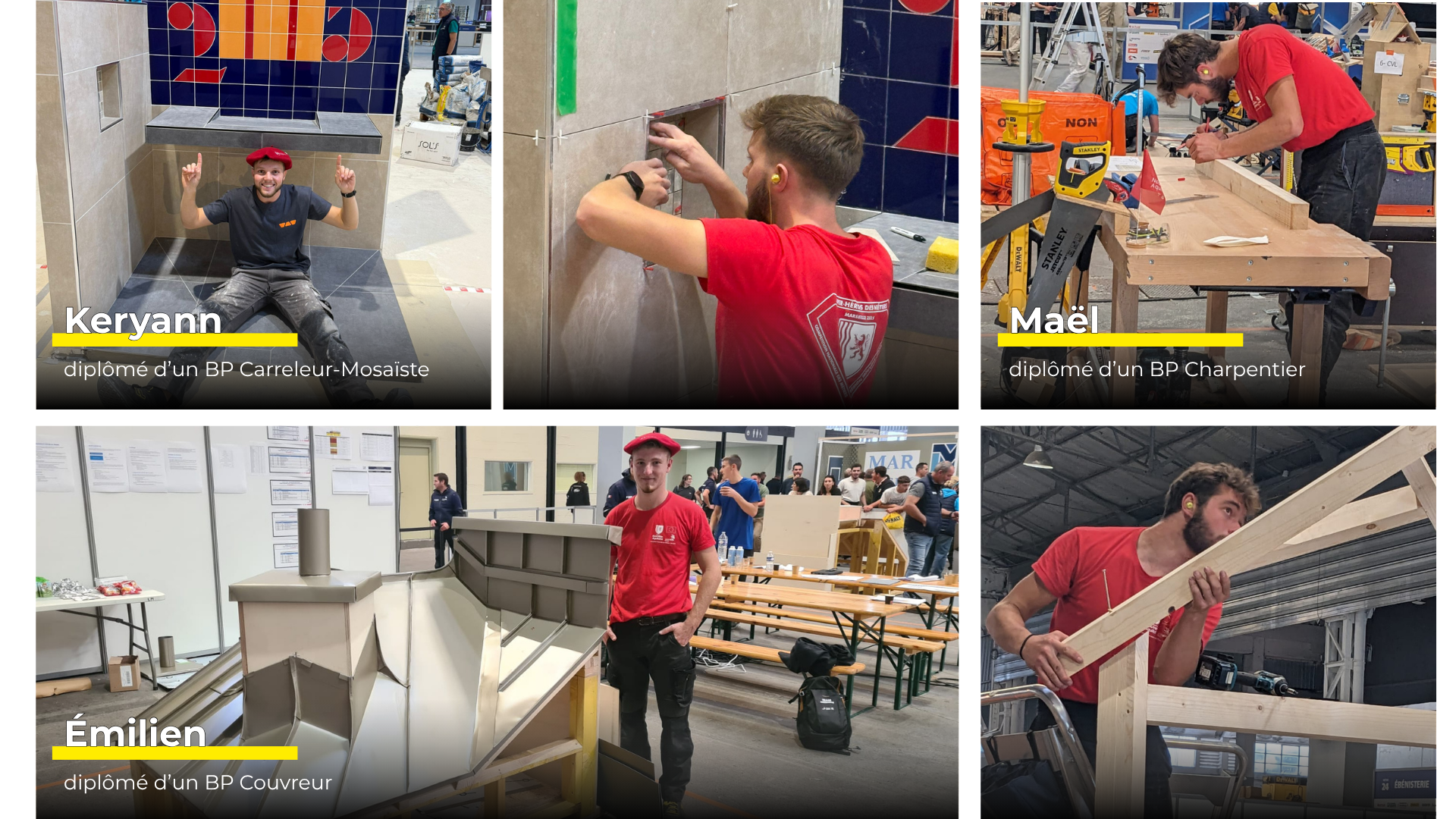 Nos trois apprentis se sont brillamment illustrés durant ces 3 jours de compétitions intenses. À travers ces épreuves exigeantes mêlant technicité, précision et sens esthétique, ils ont su montrer tout le professionnalisme et la rigueur qui caractérisent leurs métiers de couvreur, de charpentier et de carreleur-mosaïste. Passionnés et rigoureux, ils ont porté haut les couleurs de notre région et de la formation par l’apprentissage. Ils ont démontré que le BTP, au-delà des techniques et des gestes, est avant tout une aventure humaine faite de passion, de transmission et de dépassement de soi. Parmi nos trois apprentis en lice, Keryann décroche une médaille en bronze et rejoint l’équipe de France des métiers. Une belle récompense pour ce jeune artisan qui lui ouvre aujourd’hui de nouvelles perspectives.